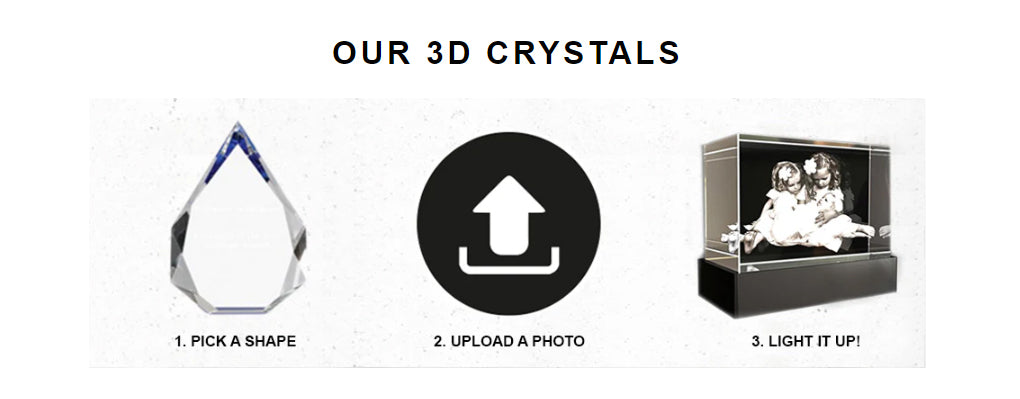 Our highly skilled and trained designers work extensively with the latest software and technologies to first convert your 2D photos into 3D. We then use a high definition laser, which contains tremendous heat, to laser your photo into the crystal of your choice. The heat is induced into the crystal, vaporizing the crystal at different coordinate points, which finally creates the different pixels of your picture. The laser beams are non-invasive, so no marks or blemishes are left on the surface of the crystal. When viewed from any angle, the intricate design can be seen as a 3-dimensional image. The different aspects of your original picture, including the brightness, contrast, and sharpness, will be enhanced to create the perfect keepsake!